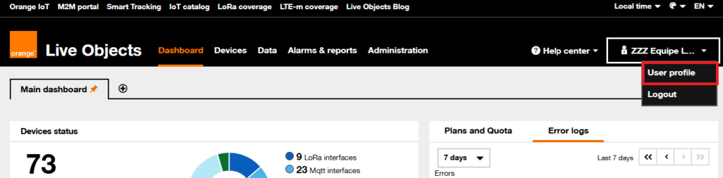If you access the Live Objects portal via Single Sign-On (SSO) such as Orange Business’ Espace Client Entreprise or Orange.ro: